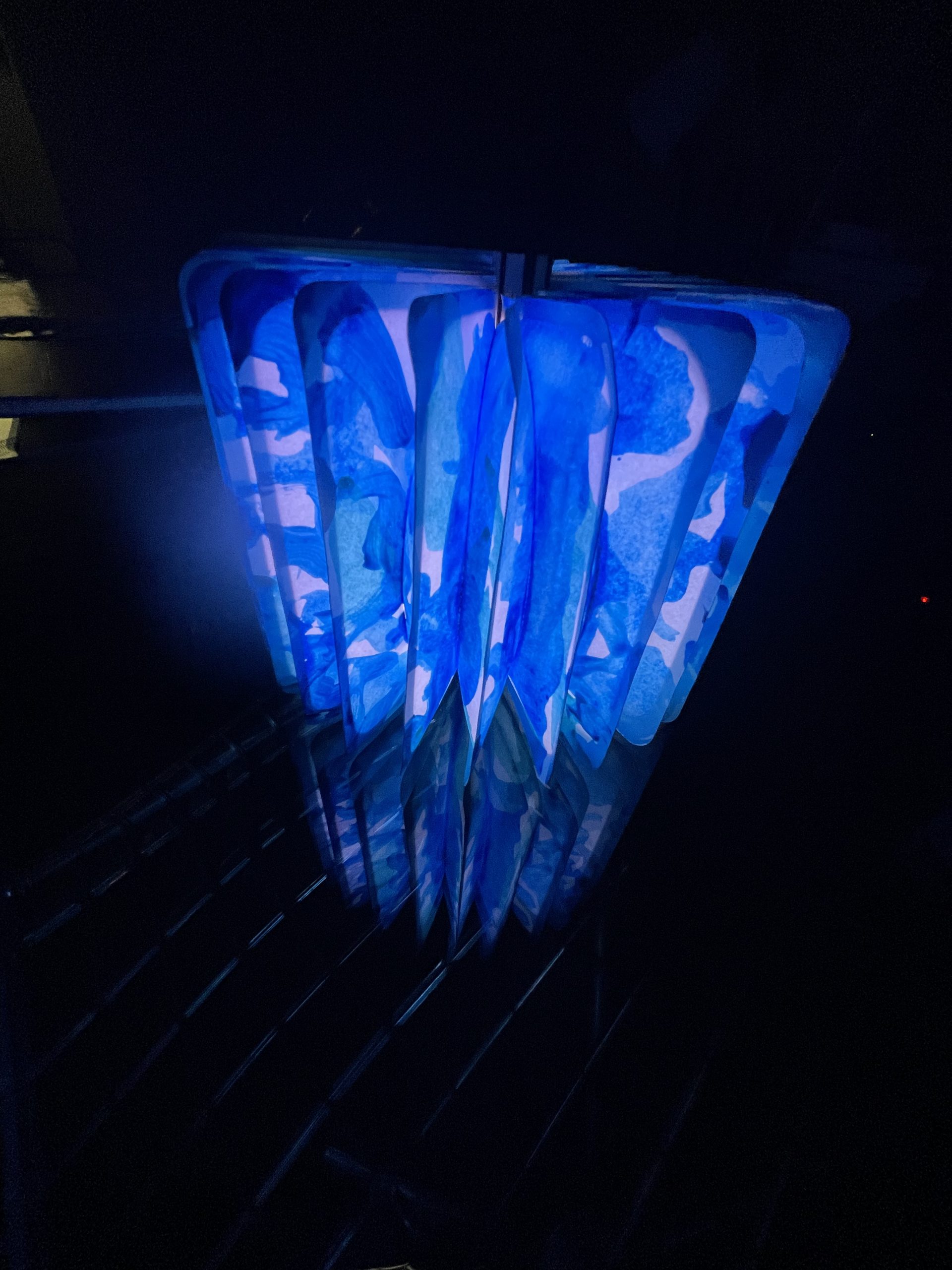 A forma de libro , se esconde una obra de arte única , realizada en pigmentos naturales , está iluminada desde el interior con LEDs, se carga con una USB y tiene una autonomía de 6 horas .